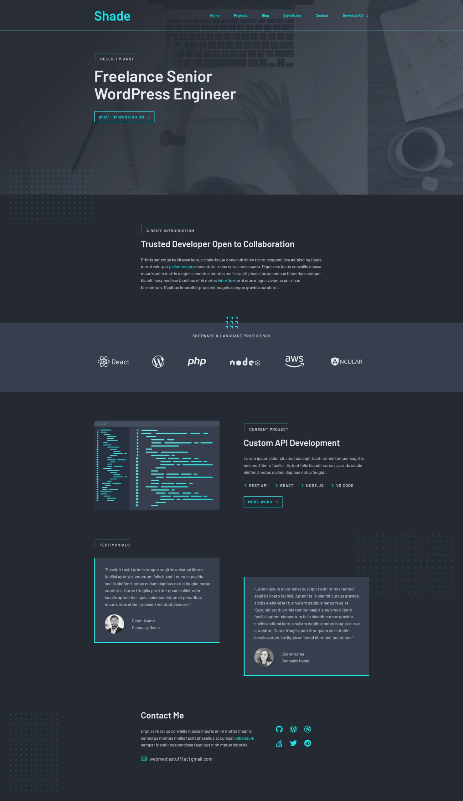 Shade Freelance senior WordPress engineer portfolio website design. Live Link Read More GeneratePress